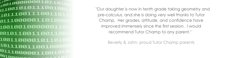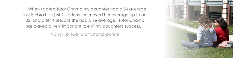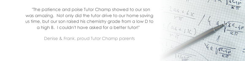 Tutor Champ LLC is a tutoring company specializing in mathematics and science subjects for all ages. We provide qualified science and math tutors that take pride in catering to each student on a personal and individual level to help mold their future for success in and out of the classroom. An analytical and critical teaching approach is implemented to achieve results that can be utilized in real world applications.